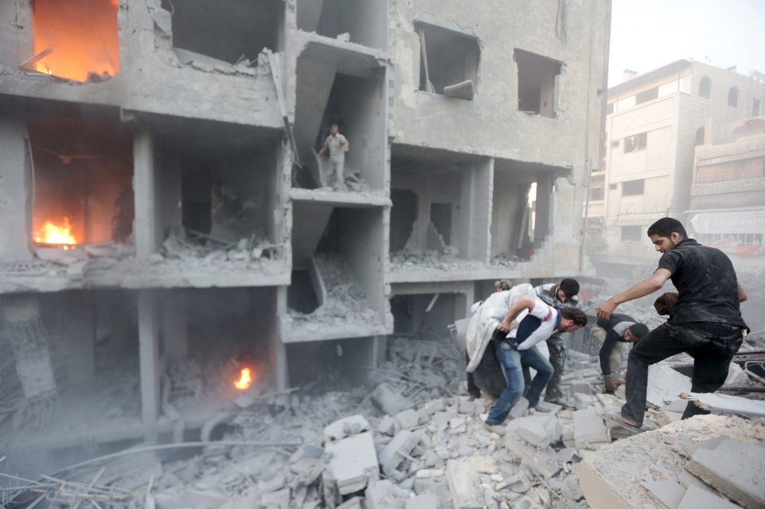 في غضون ذلك، اعتمد نظام الأسد سياسة ثابتة تقوم على القتل الجماعي المتعمد للمدنيين – أولاً، عن طريق الغارات الجوية والصواريخ الباليستية، ثم البراميل المتفجرة والاستخدام المزعوم على نطاقٍ واسعٍ للأسلحة الكيميائية.